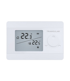 El termostato estandar Triangular es cableado y cuenta con tecnología TPI que permite un manejo eficiente del sistema de calefaccion y maximiza el ahorro energetico. Ya que solo se consume la energía estrictamente necesaria para alcanzar la temperatura objetivo.
