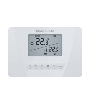 El termostato programable Triangular es un complemento infaltable en la instalacion de calefaccion Regula la temperatura de cada ambiente y tiene una funcion de programacion diaria y semanal para setearla.